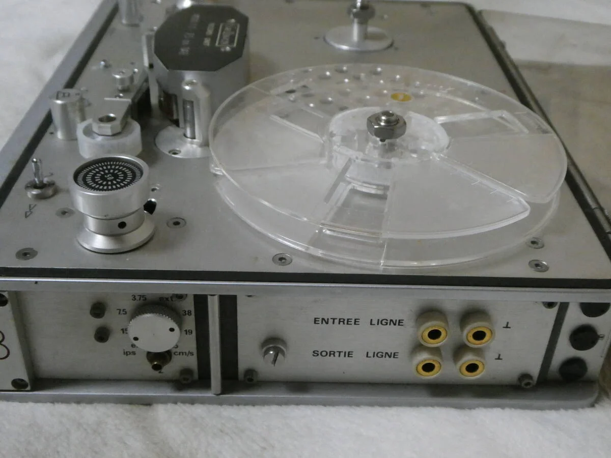 A truly professional machine it was available only to studios and industrial users, but it embodied many features of great interest to all amateurs. The SP7 was on a par with the Nagra 4. The super durable chassis was made from a block of machined aluminum. 5 inch reel capacity can be extended to 10 1/4 inches with an accessory ABR 85